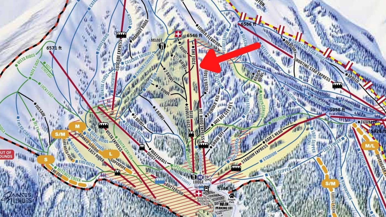 This offseason, the Mt. Hood Express was replaced by a Leitner-Poma high-speed detachable six-pack chairlift. The new chairlift base terminal will start at the same location, but the top terminal is slightly closer to the Blue lift, allowing riders more room to unload on both sides of the new chairlift. The chairlift will have the same speed and ride time (1000 feet per minute and 4.5 minutes respectively) but it will also have an uphill capacity increase from around 2600 to 3600 riders.