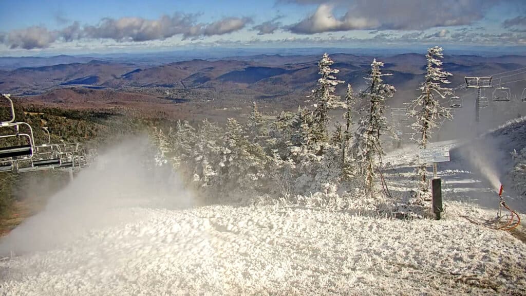 Killington: Killington is consistently a contender for first to open and last to close in the Northeast. The snowmakers at Killington began their work in the North Ridge terrain pod on Tuesday. Snowmaking is also ongoing on Superstar for the Stifel Killington Cup. They told us that they made โdecent progressโ yesterday. Snowmaking continues in North Ridge today, and they’re getting some natural snow as well. After we published this post, Killington announced that they’ll be opening on Friday.