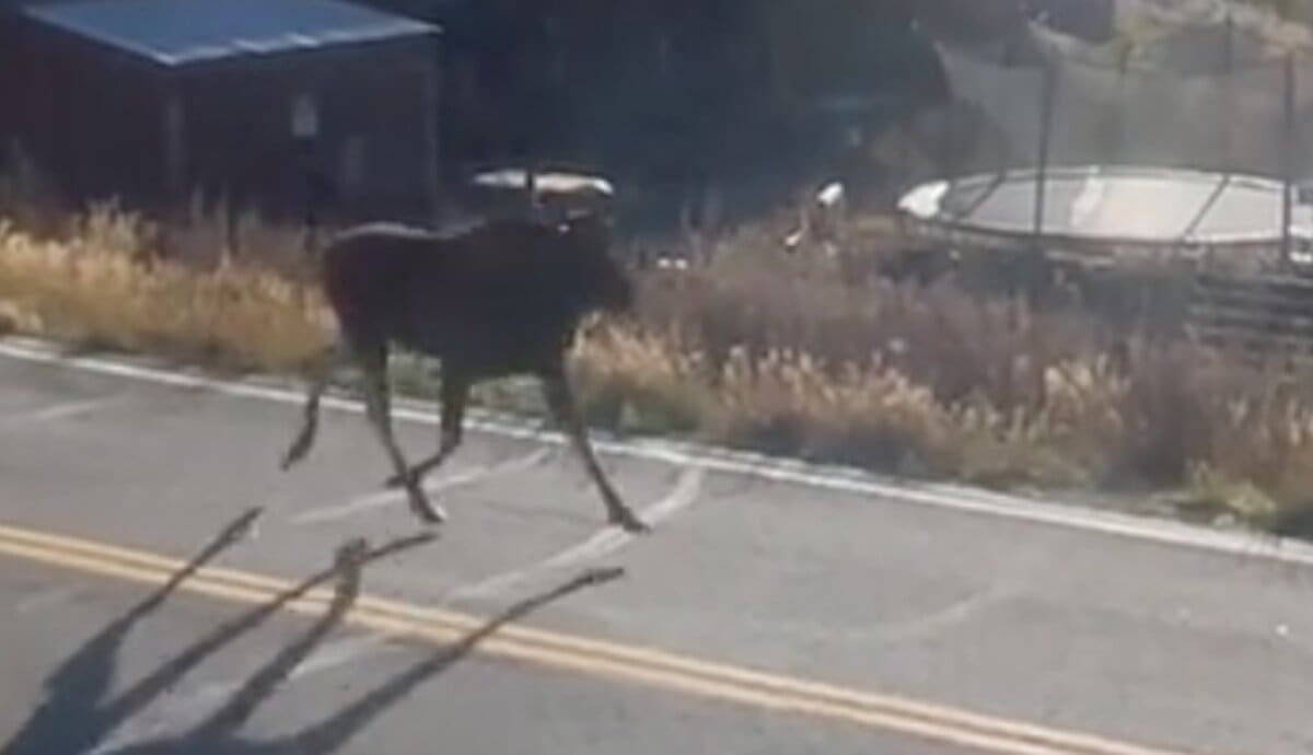 Smooth move by this cyclist in Colorado who chose to ditch her bike and seek higher ground when a moose came trotting down the road in her direction. You might think her evasive maneuvers were a bit overkill but you have to remember moose weigh up to 1,000lbs and stand 6ft at the shoulder. Moose account for more attacks on people than any other species of wildlife and an encounter can turn injurious or even deadly in a split second.