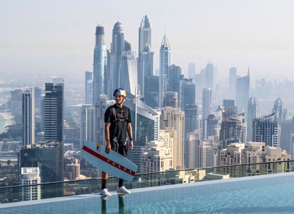 “Habibi, come jump through Dubai.ย Brian Grubbย takes the plunge into the (very) deep end with this record-breakingย WakeBASEย from the worldโs highest infinity pool.” –Address Beach Resort