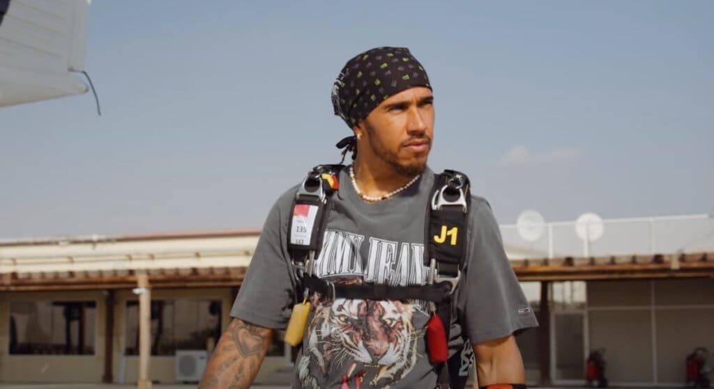 It’s no secret 7 time Formula One World Champion Sir Lewis Hamilton is has a need for speed but did you know he comfortable traveling at terminal velocity towards the surface of the earth? Lewis doesn’t just casually tandem skydive, the dude does full on somersault exits and can hold an iron cross with the best of them. Lewis even calls himself a “frequent flyer.” Nice touch having Mr. Hamilton ride to the airport in the Dubai desert in a vintage Mercedes…I’m sure his team would approve. Just add this to the list of rad extraculiculars Lewis likes to do during his time off the track including surfing and snowboarding.