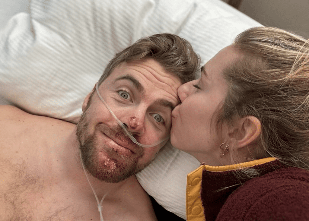 Kilde is recovering and in good spirits and was able to smile for a picture with his girlfriend Mikaela Shiffrin from a hospital bed. Get well soon buddy!