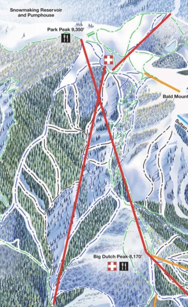 Up at Park Peak, there will be a chairlift that services mostly advanced terrain runs and glades, along with a chairlift that is for beginner and intermediate skiers. The latter chairlift connects to somewhere around the Ontario and Trump trails.