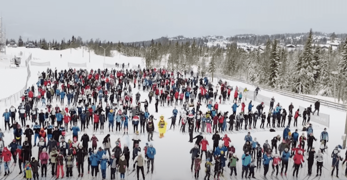 Cheers to this group of fun loving Norwegians led by 13 time world champion and two Olympic gold winner, cross country legend Petter Northug who set out to claim Guinness World Record for largest ski lesson ever conducted. The previous record was set by Switzerland who had 594 skiers turn up for a group lesson. Petter was hoping to get 600. After the final was tally was taken 604 skiers showed up for his expert instruction and the record now lives in Norway. Jubel!