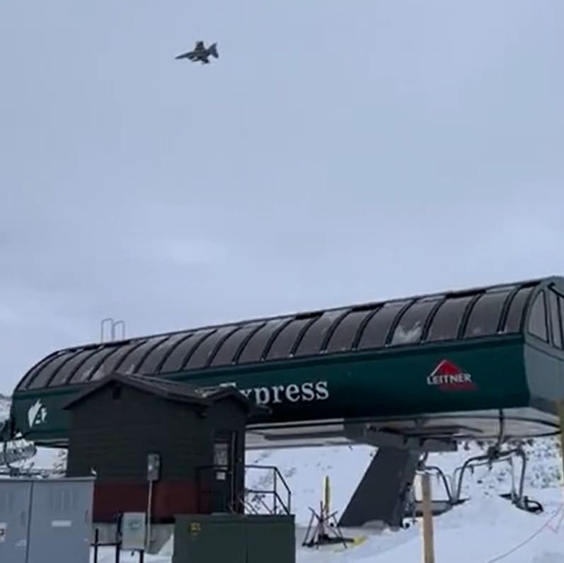 On February 18th, Reddit user @WollytheNole shared a video in the COSnow group of a fighter jet sending it above Colorado’s Arapahoe Basin. There were reportedly a few fighter jets that flew over the Colorado ski resort that day.
