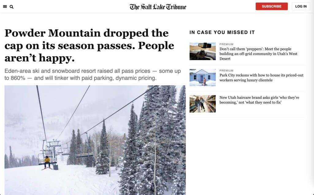 Had to do a double take on the title of this Salt Lake Tribune article to make sure I was reading it correctly but yeah, Powder Mountain is increasing the prices of all their season pass offerings and in certain cases to an astronomical extent (860% is outta this world).