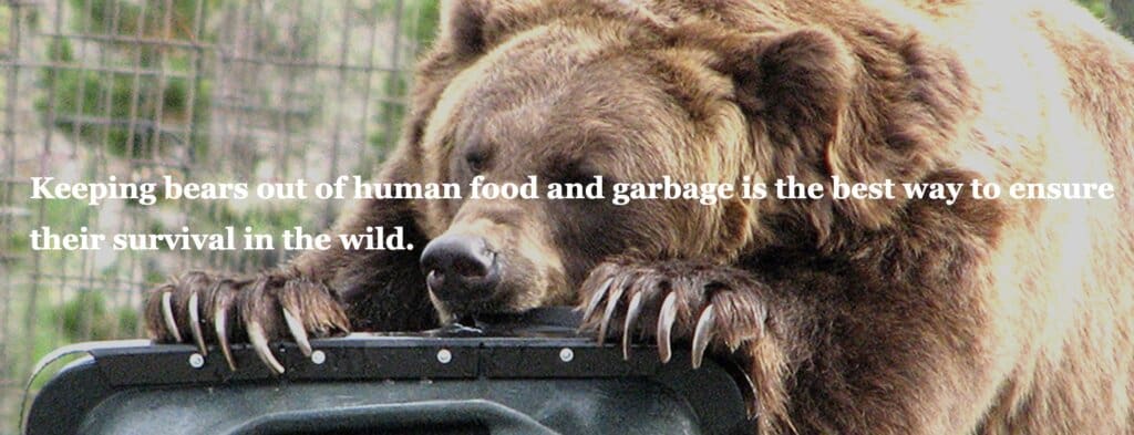 In keeping with its continuing effort to educate the public on living and traveling safely in bear country, the Grizzly & Wolf Discovery Center cooperates with state and federal agencies in the testing of bear-resistant food and garbage storage containers. Bears that learn to associate people with food often become dangerous and are ultimately killed or placed in captivity. Keeping bears out of human food and garbage is the best way to ensure their survival in the wild.