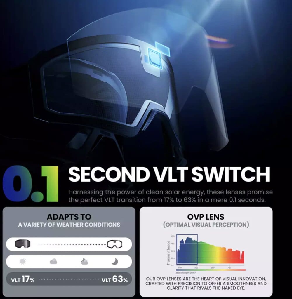 Just came across these new ski goggles which utilize a smart LCD photochromic lens that go in between tints in .1 seconds and if they work anything like they do in the video I’m interested.