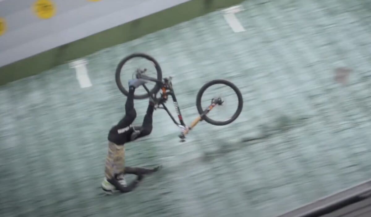 German mountain biker Johannes Fischbach was attempting a world record mountain bike jump when he ate it… hard. Honestly the attempt itself looks pretty clean, right up until that last moment. So clean, in fact, that he actually landed it after the fall (that video is below the crash video). Fortunately he was pretty much okay after this attempt.