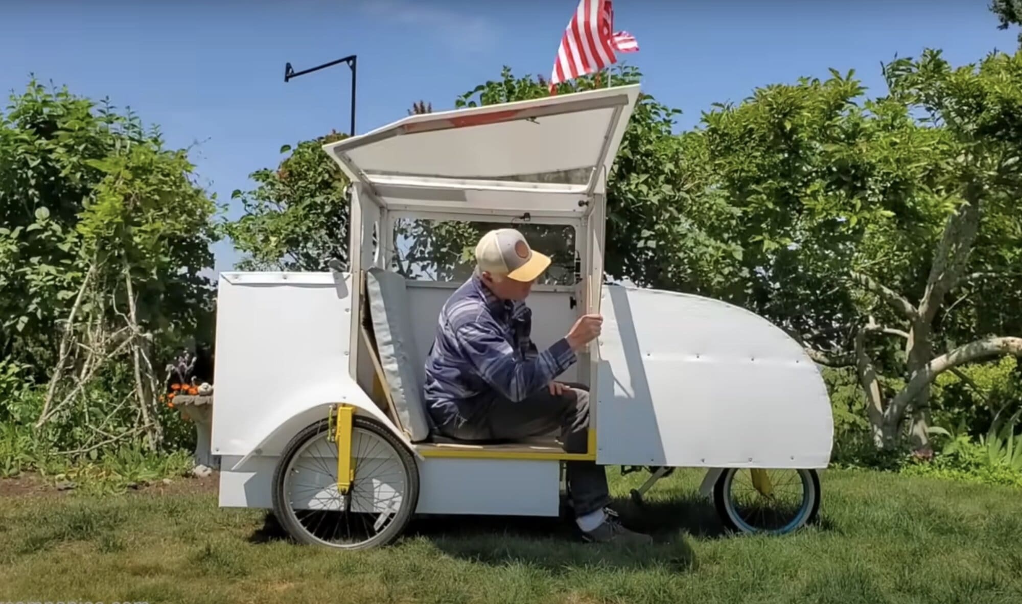 Paul uses scavenged bike parts and fluted plastic (often from recycled campaign signs) to create hyper-efficient bicycle campers that weigh less than 100 pounds. If you’re interested in recreating one of Paul’s bike campers you can find his plans HERE: