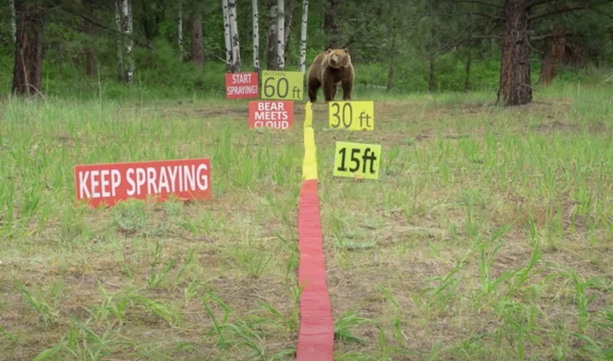 “Knowing the distance your bear spray goes is important. How you deploy it is determined by the bear’s agitation level and how far away it is.”