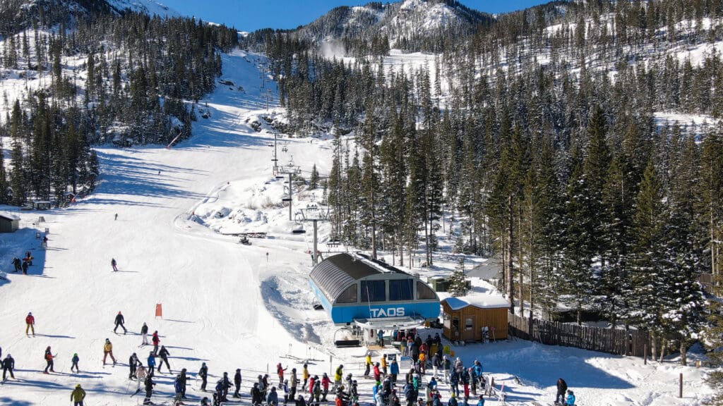 Taos Ski Valley’s newest lift upgrade means your legs will be burning. With half the run time of its predecessor, guests can now reach Kachina much quicker. Skiers and riders can now shred twice the number of mega-laps from the top of Kachina all the way to the base. Their longest time sitting will be grabbing an authentic German beer apres ski at The Bavarian, situated right at the base of the new lift.