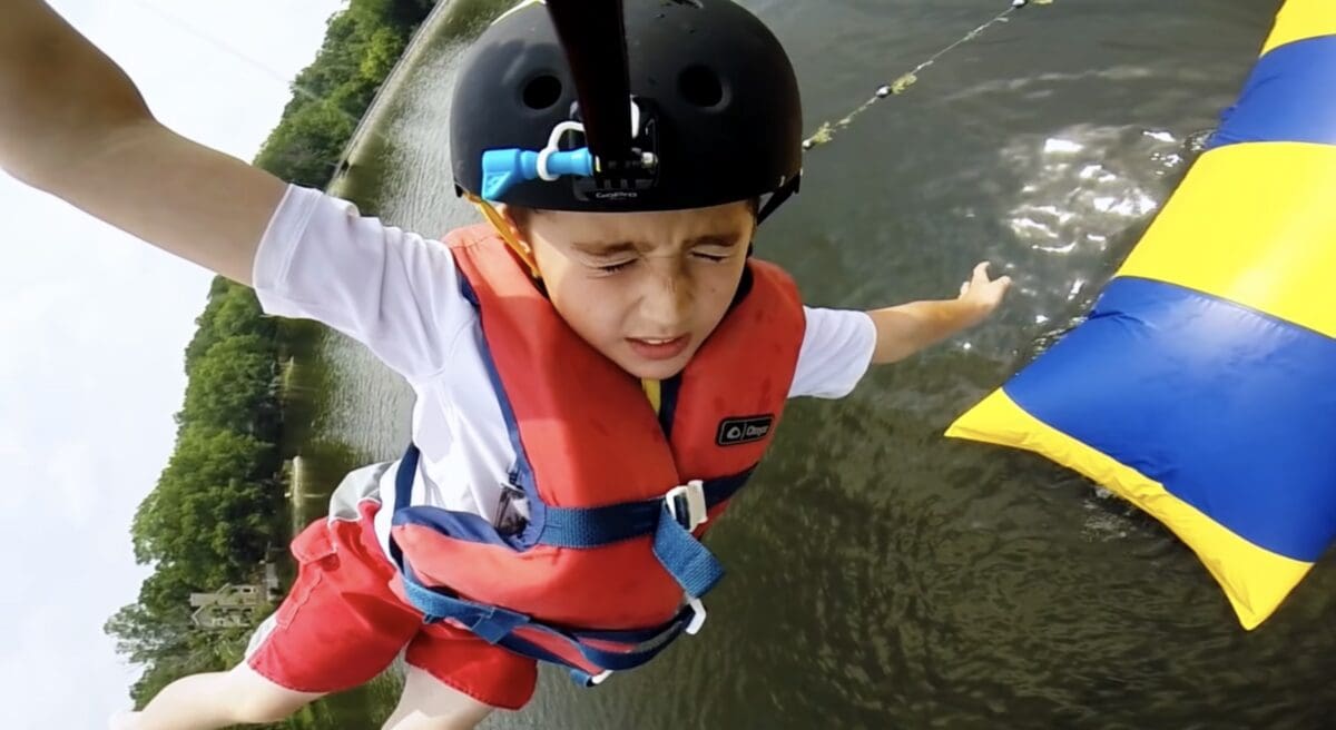 If you’re looking to cry with laughter today, this video might be your best shot. Whichever summer camp counselor decided to stick a GoPro onto these kids’ helmet before launching them into space with ‘the blob’ deserves a massive raise, and whoever edited this video and put the music to it might need an even bigger one.