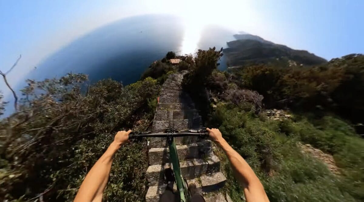 “Full sends only from Jonny Livorti. He earned a $1,000 GoPro Award for this mind-boggling 360° POV footage of his staircase ride overlooking the Italian Riviera. Speed, finesse + bravery were just a few of the things Livorti needed to accomplish this daredevil mountain biking descent in Liguria, Italy. Why hike when you can mountain bike?“