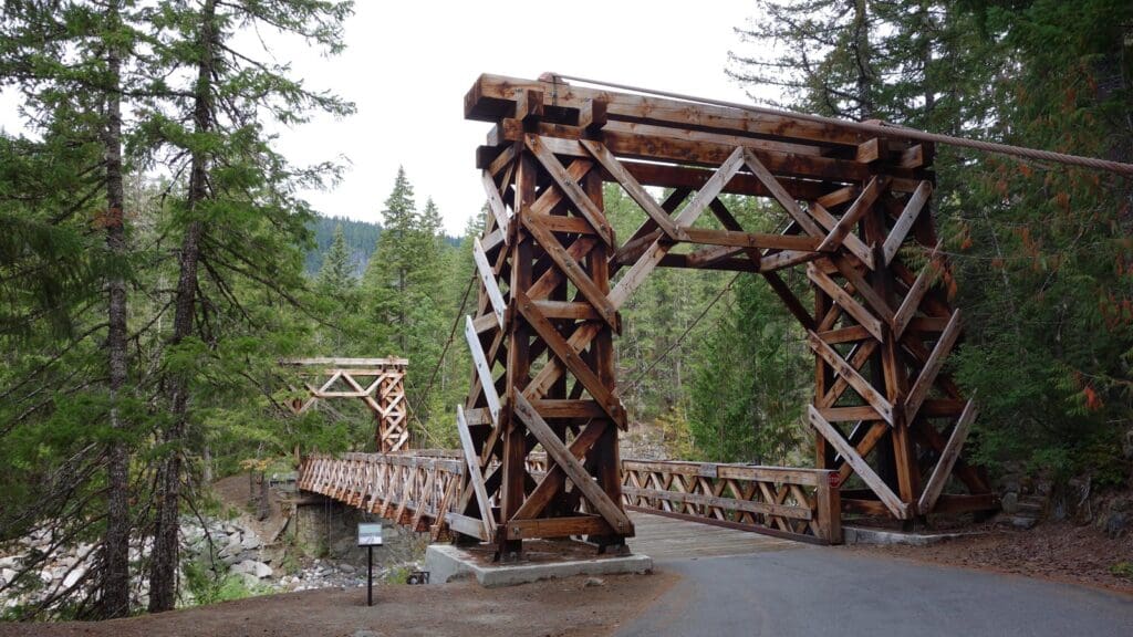 The Nisqually Suspension Bridge remains in use but doesn’t see as much traffic as it once did. The road continues to provide access to the Longmire Community Building and the renamed Longmire Stewardship Campground, but these facilities are closed to the public and used only by park volunteers and researchers who contribute to the mission of the National Park Service. With this gentle usage and rigorous upkeep, the bridge can be expected to be in service for decades to come.