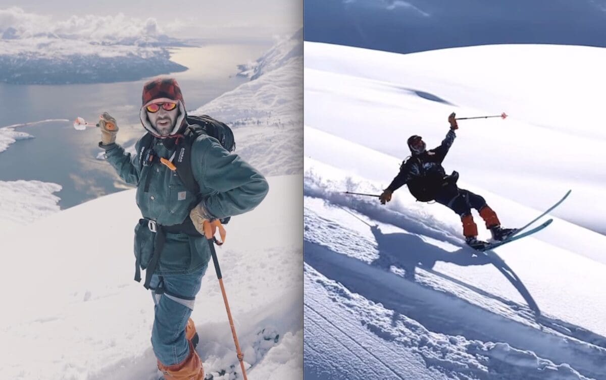 Donny’s trademark backseat edge of control ski style might look a bit off but as you can see by the reaction of the heli-skiing guides at Pulse Line, it requires immense strength and skill. Gotta love Donny!