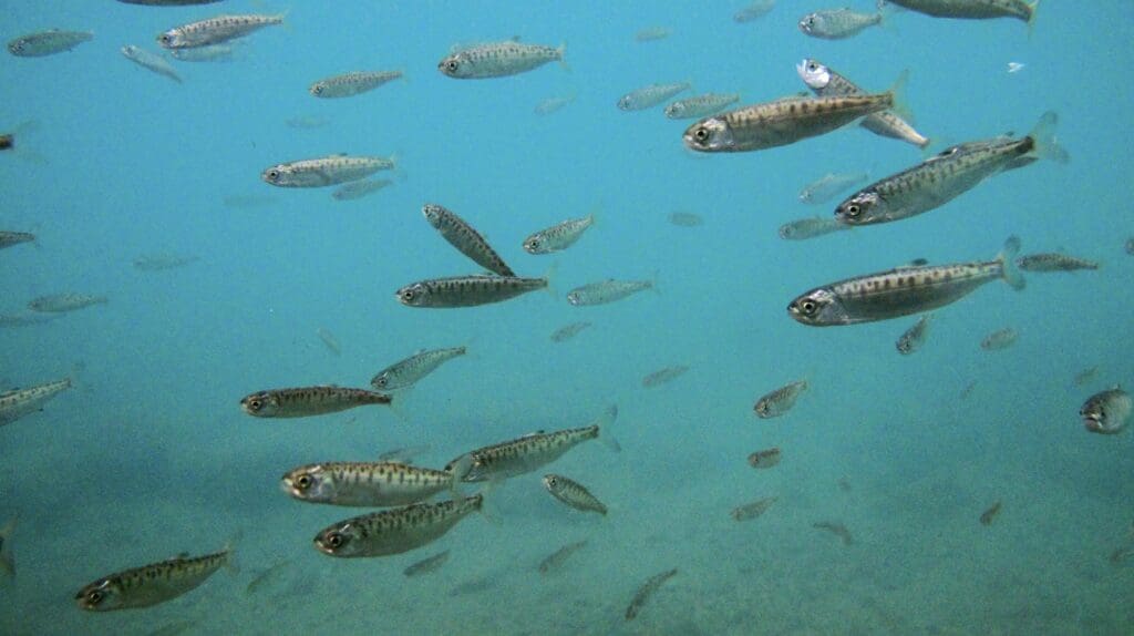 Sockeye salmon are anadromous, living in the ocean but entering fresh water to spawn. While at sea, sockeye salmon sport iridescent silver flanks, a white belly, and a metallic green-blue top and are known as “bluebacks.”