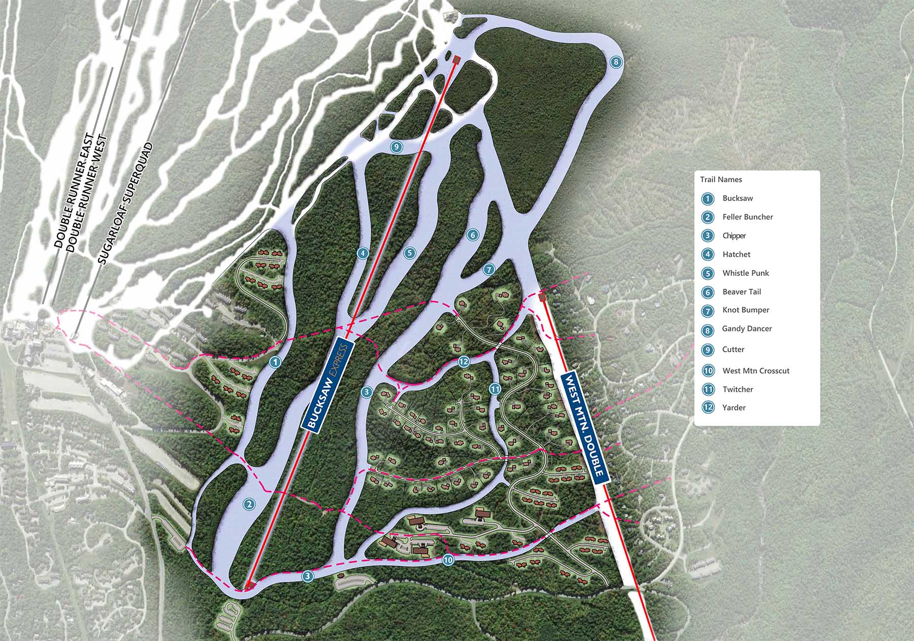 West Mountain: The West Mountain expansion, which brings 12 more trails to Sugarloaf, debuted last season. Nine of those runs opened last winter, and two will make their grand debut this upcoming season. Twitcher and Yarder are easy trails that connect Lower East Mountain to Whistle Punk. The top of Upper Gentler, which didn’t open last winter, was regraded, making it skiable from the top.
