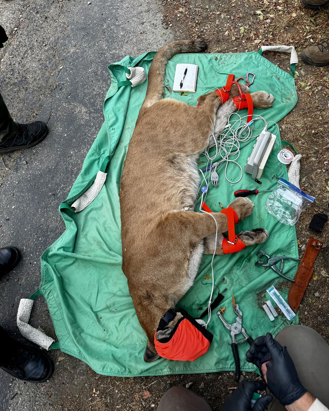 The family called the Tustin Police Department who responded to the scene along with multiple other departments who tranquilized the big cat. The sedated mountain lion was then relocated to the Cleveland National Forest by trained professionals.