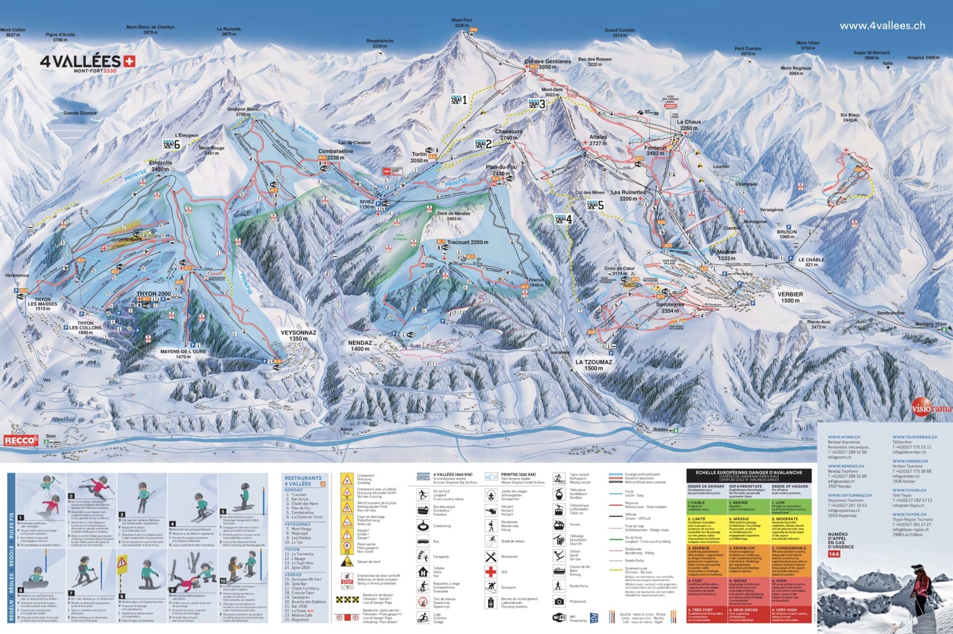 Opened back in 2005, the Veysonnaz-Thyon gondola connects the town of Veysonnaz to part of the enormous 4 Vallรฉes ski resort. The eight-person gondola can fit 1600 people per hour. It takes eight minutes to reach the top terminal. 4 Vallรฉes, which is the largest ski area in Switzerland, consists of the Verbier, Bruson, La Tzoumaz, Nendaz, Veysonnaz and Thyon ski areas.