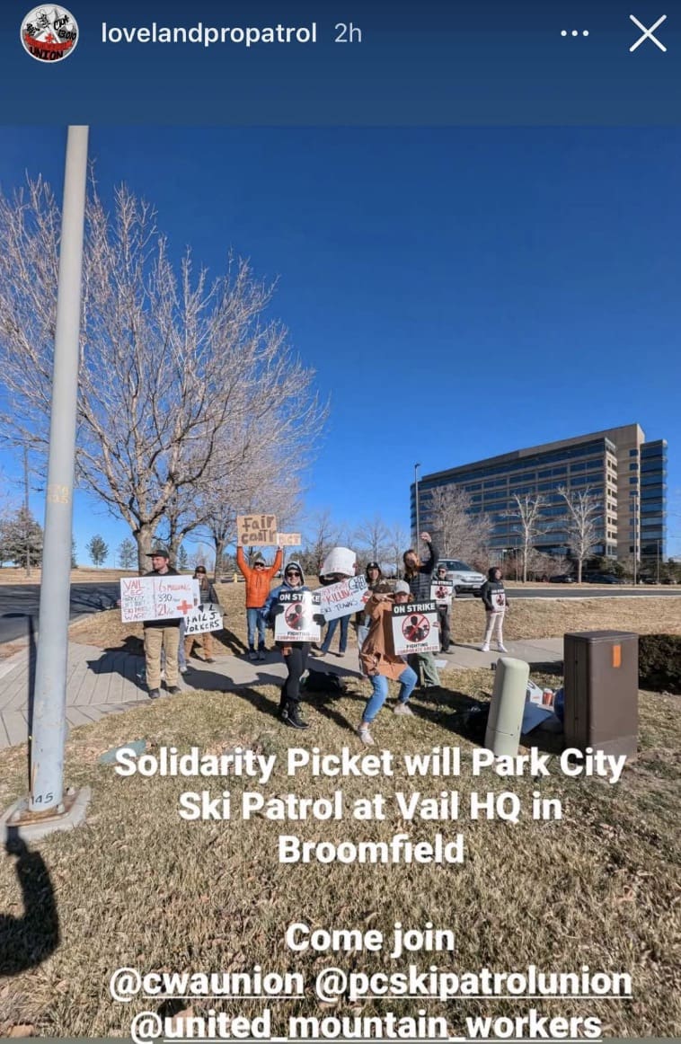Picketing Patrollers at HQ: Park City isn’t the only place where ski patrollers were picketing. On Monday, the unions for Eldora and Loveland’s ski patrol picketed in Broomfield, Colorado, next to the headquarters of Vail Resorts. While those ski patrols aren’t a part of Vail Resorts, the move was an act of solidarity with the Park City Professional Ski Patrol Association.