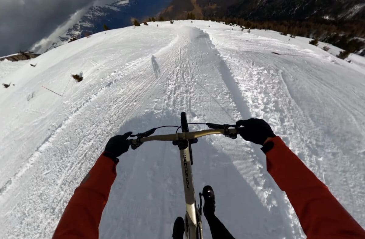 Skis are for snow, mountain bikes are for dirt. They might be on the same mountain, but they don’t usually intermix. Usually. Every once in a while we get to see some wild mountain bikers charge down ski resorts for some sort of nuts race or event. In this case it’s Antoni Villoni charging down the slopes of Verbier for the SnowDay4Bike.