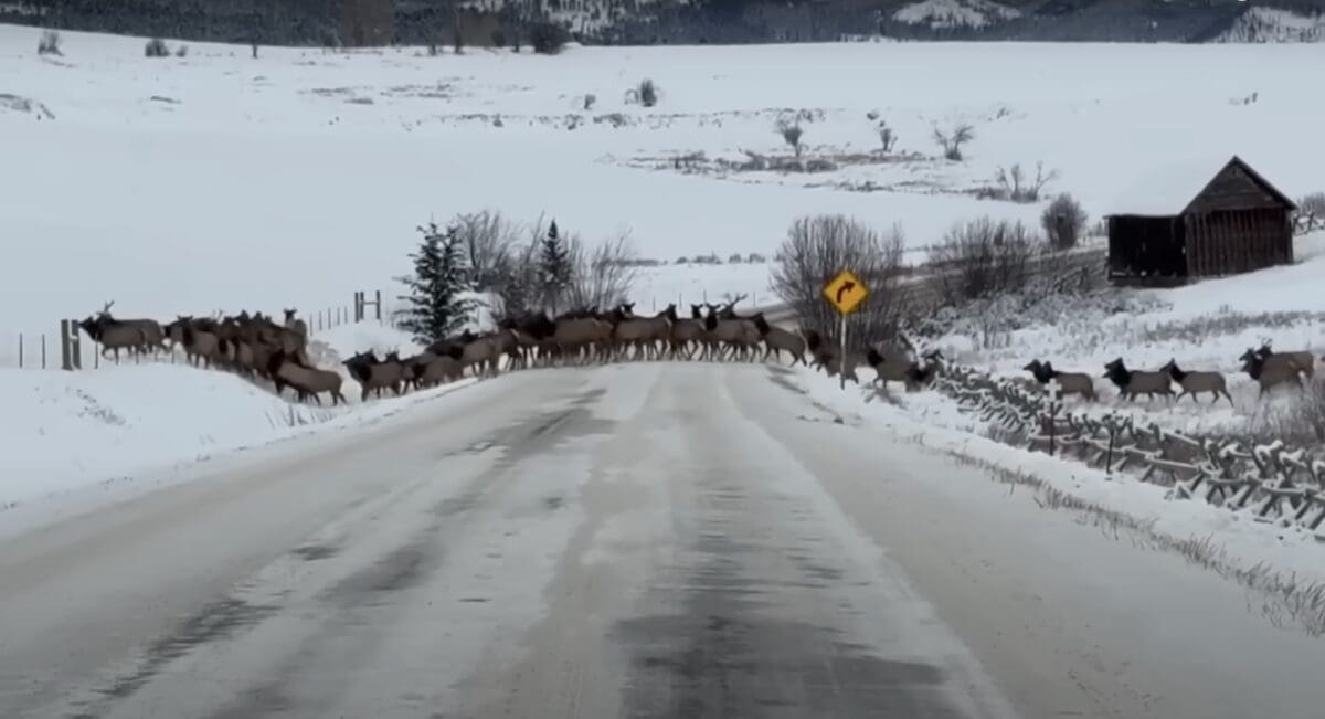 Michelle was having her morning cup of coffee when she looked out her window and saw a massive herd of elk crossing Cottonwood Road. Michelle quickly jumped in her car to get a closer perspective and managed to capture the perfect video of the mass migration.