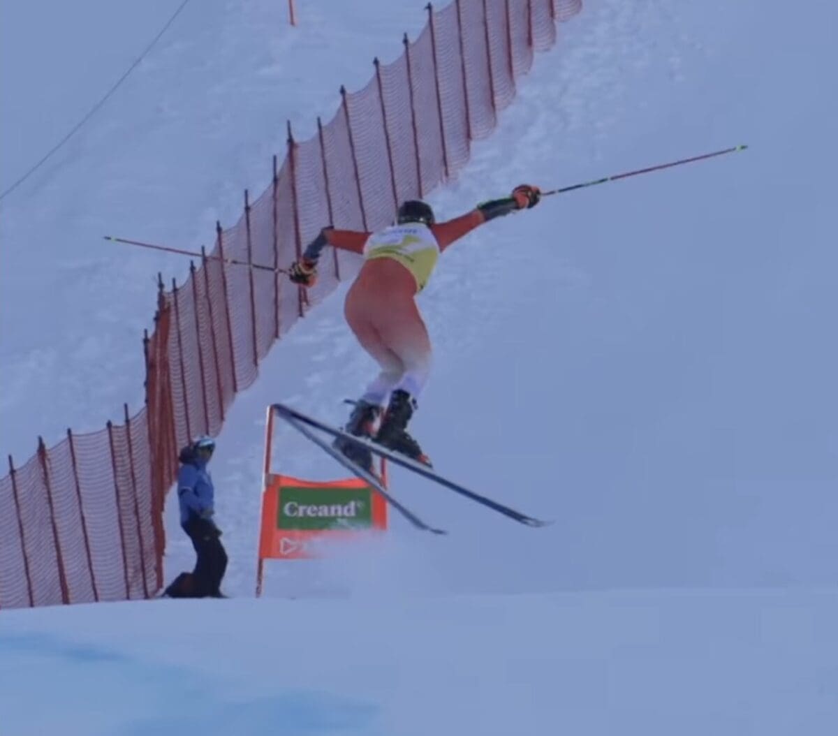 Swiss alpine racer Lenz Haechler showed of a bit of his freestyle chops while on course at the FIS Alpine Europa Cup Andorra held Grandvalira Ski Resort.