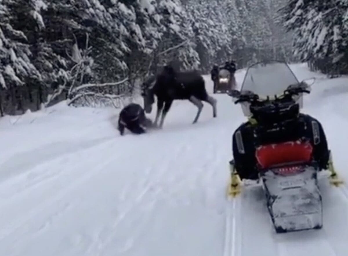 This snowmobiler should count himself extremely lucky for only getting his leg broken in this completely avoidable attack. Word to the wise, if you come across a moose in the wild during any time of the year, give it maximum breadth or potentially suffer the consequences.