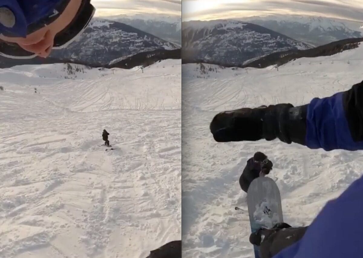 Although the downhill snowboarder’s position was premeditated, it does bring to mind rule #3 of the Skier Responsibility Codeย which states “Stop only where you are visible from above and do not restrict traffic.”