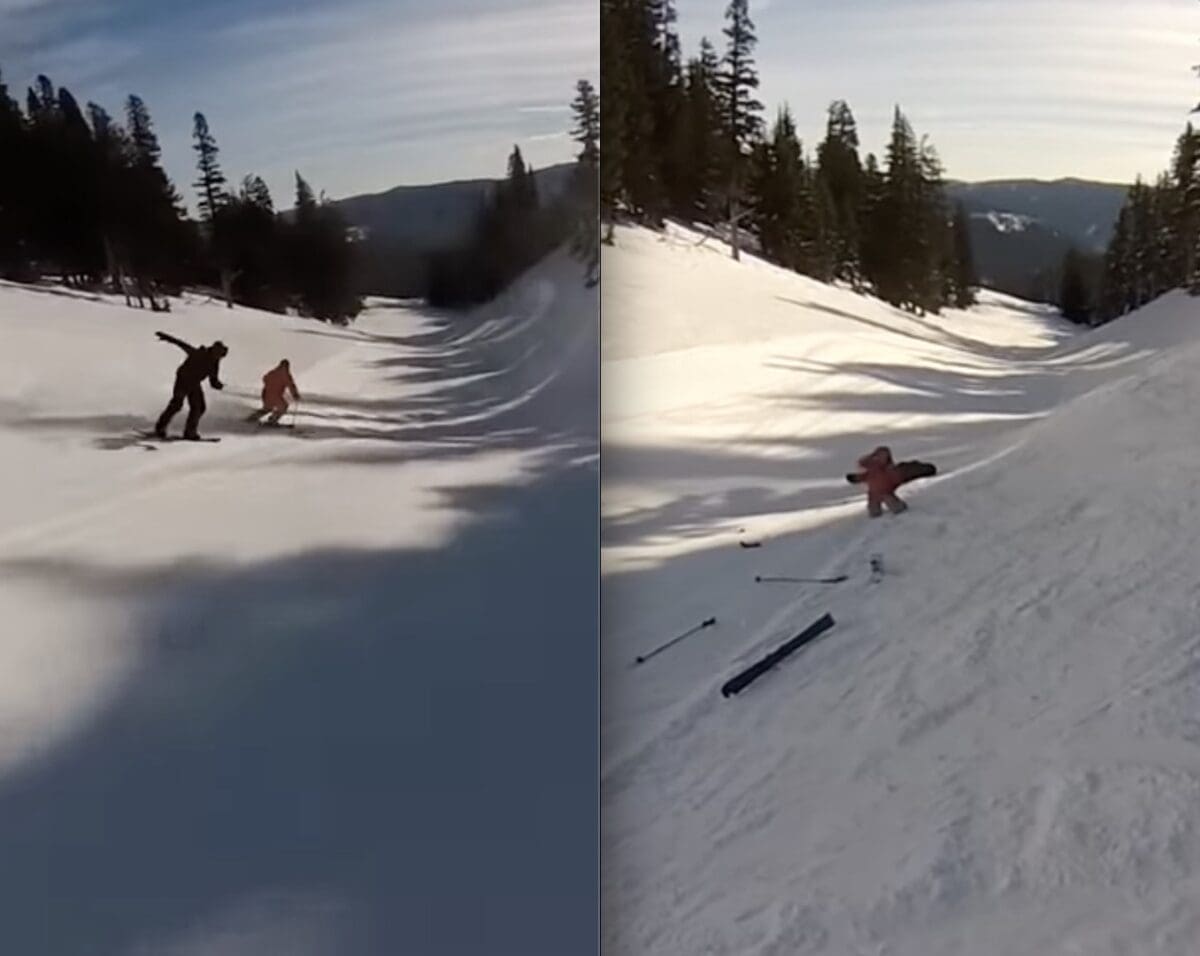 Just a quick reminder that before you go fast on either skis or a snowboard, you need to learn how to control your speed, turn, and stop, or else situations like this can happen.