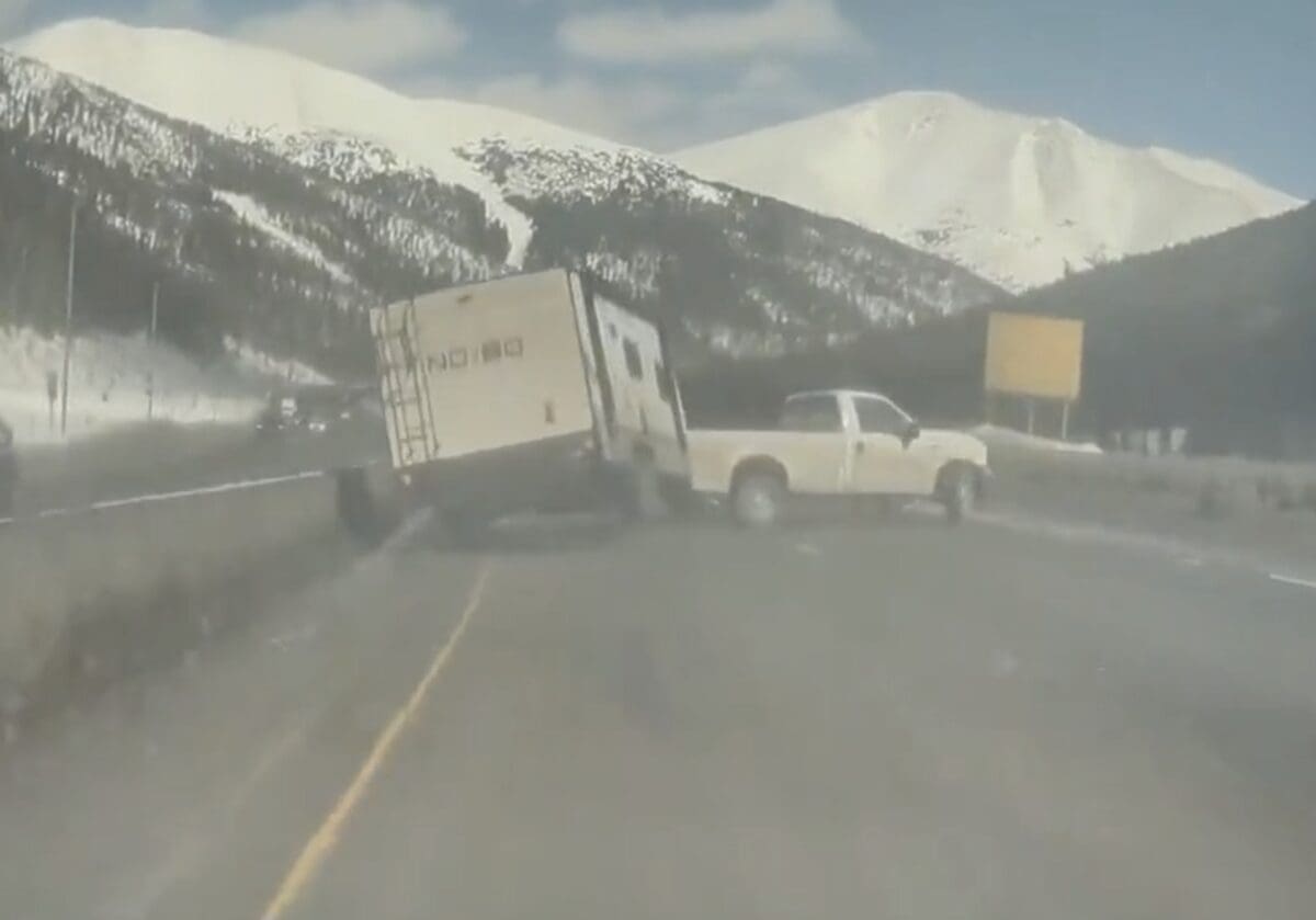 Be aware of the dangers that potholes can create. Hitting a pothole at high speeds can cause damage to the tires, wheels, and suspension or lead to accidents. Such was the case below when a truck driver with a trailer was thrown off-kilter by a large pothole on I-70 near the Loveland Pass area.