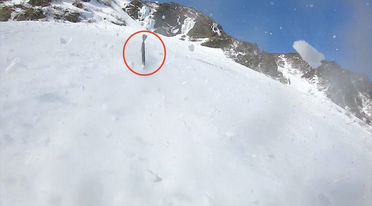 In this case, a snowboarder at Tuckerman Ravine failed to hold his ice axe properly, leading him to lose the axe as he slides down a snowy face uncontrollably. Fortunately he was able to walk away with just a few scratches, but it could have been a lot worse.