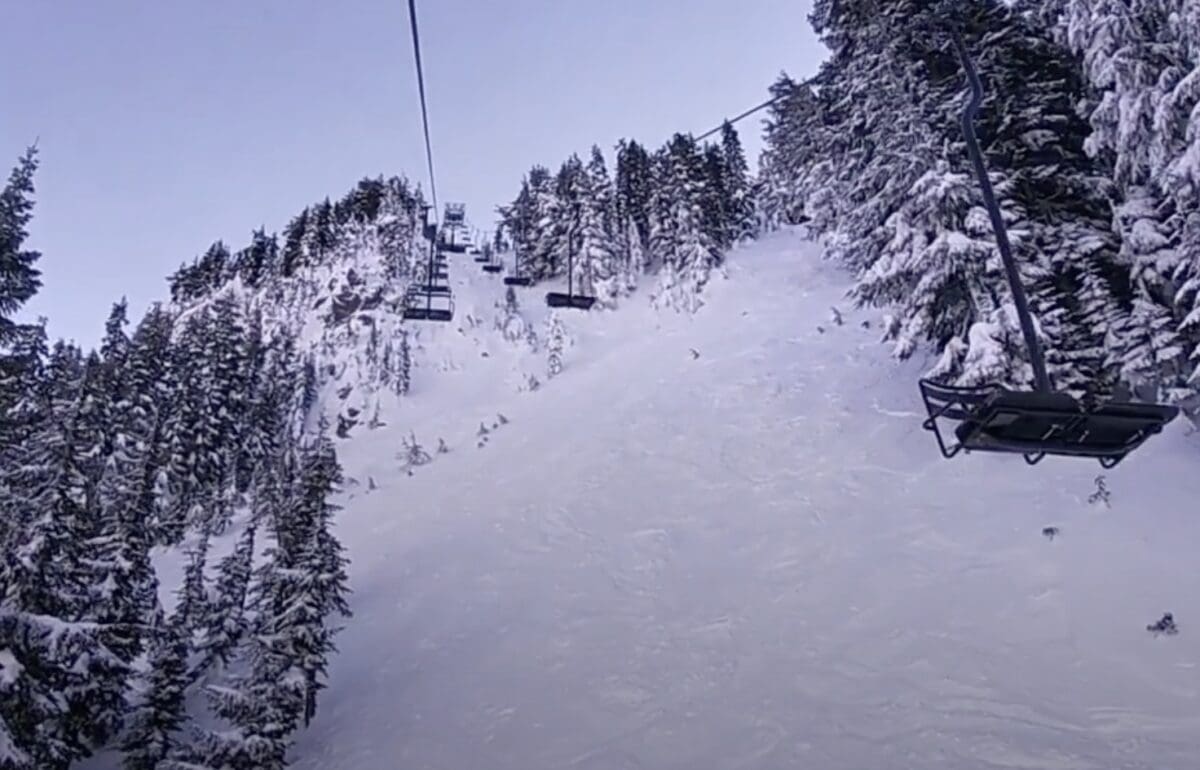 The chairlift climbs 437 feet over a span of 657 feet (slope length to vertical ratio of ~1.8) where it delivers skiers and snowboarders to top of Cowboy Mountain to access expert only terrain. The iconic chairlift got its name from its incredible views from atop Cowboy Mountain.