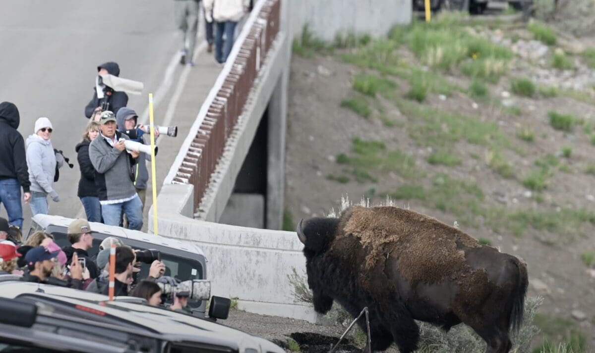 Yellowstone National Park has a saying when it comes capturing intimate photographs of their resident animal populations “give wildlife room, use a zoom.” These folks posted up on a bridge over the Lamar River were doing just that as they took pictures of bears in the riverbed below using their telephoto lens but its important to maintain situational awareness and not get lost in the viewfinder as you never know what other wildlife may be in the area.