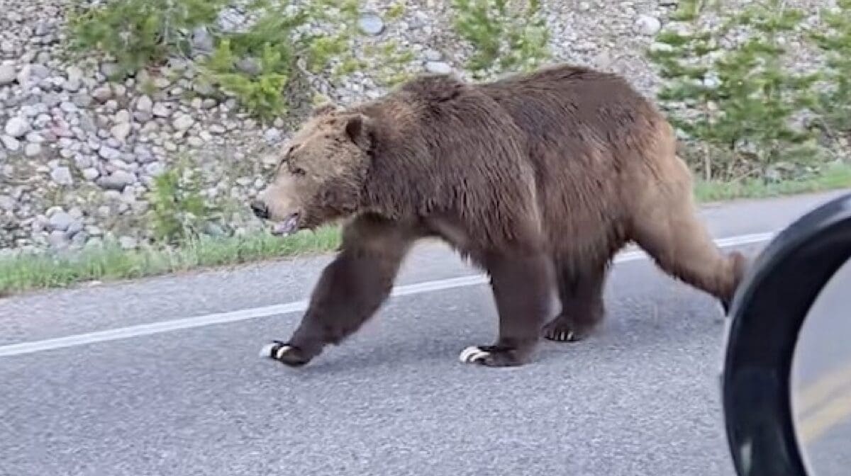 The following encounter happened on June 1st, 2025 when Colorado based photographer Kristen Hayes was driving through Grand Teton and pulled over to make way for a passing grizzly bear. As the grizzly ambled by her vehicle you can clearly hear its claws (which can grow to 4 inches in length) clatter across the asphalt: