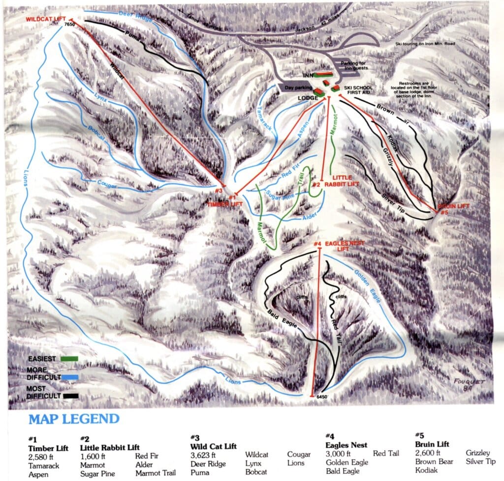 First opened back in 1971, Iron Mountain had a solid variety of terrain. The peaks were serviced by multiple chairlifts and surface lifts. Over the years, it went through various names: Silver Basin, Ski Sundown, Iron Mountain, and Carson Ski Area. Factors like being near the mighty Kirkwood Mountain, a lack of marketing through most of its history, and various financial issues led to various closures and ownership groups coming through.