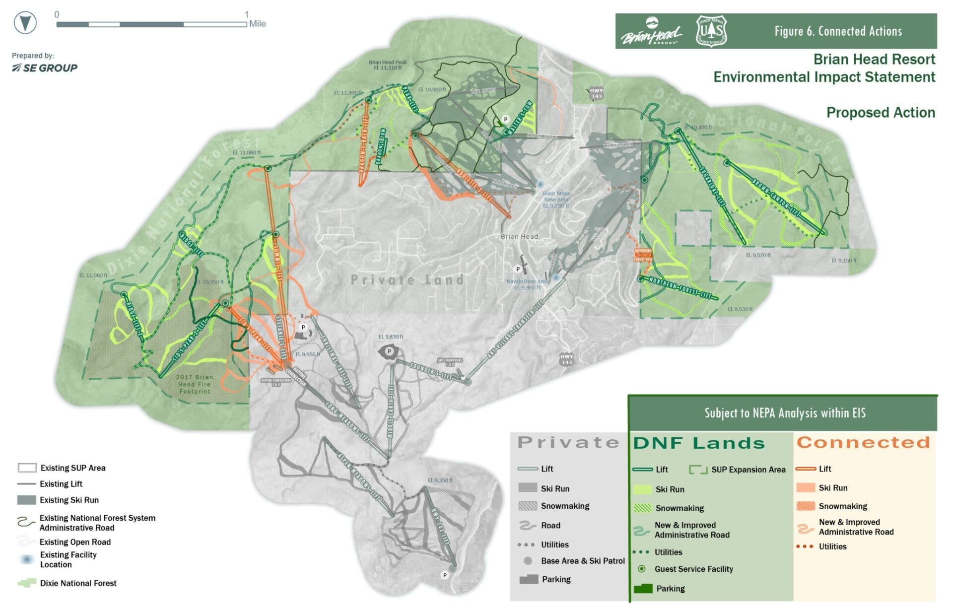 Starting today, the US Forest Service is accepting public comments for a proposed series of terrain expansions from Brian Head Resort. The ski resort is proposing the addition of 1651 acres of Dixie National Forest to its existing 887-acre special use permit. This will include the development of 382 acres of new skiable terrain, the addition of 14 new lifts, the construction of four on-mountain restaurants, the installation of 19 miles of new snowmaking infrastructure, the assembly of eight new spaces for ski patrollers, and more.