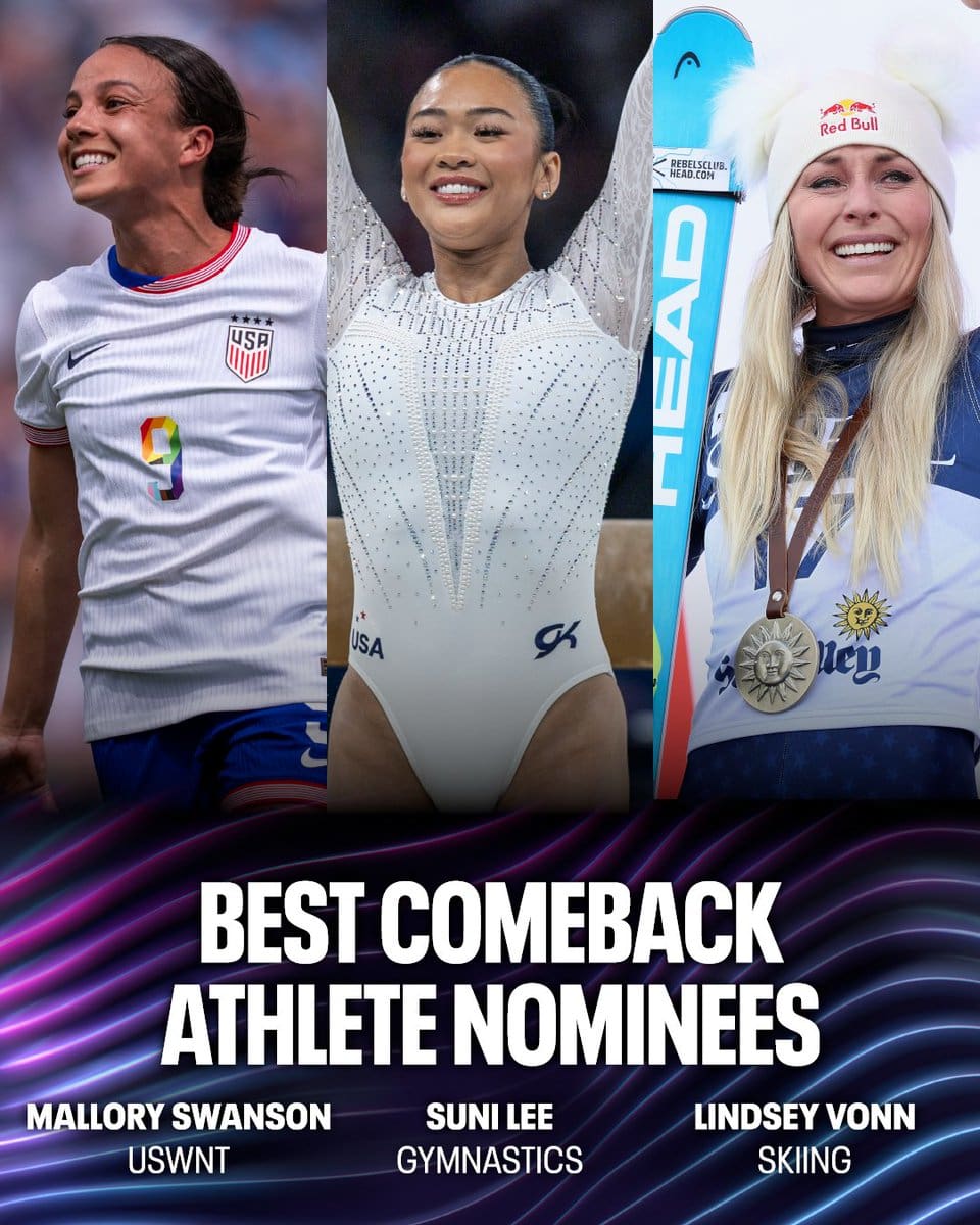 Lindsey is joined by Mallory Swanson who overcame a torn patella tendon to win Olympic gold after missing the 2023 World Cup and Suni Lee overcame kidney issues to win one gold and two bronze medals at the 2024 Paris Olympics. Voting for the ESPY Awards ends tomorrow so if you would like to cast a vote do it today.