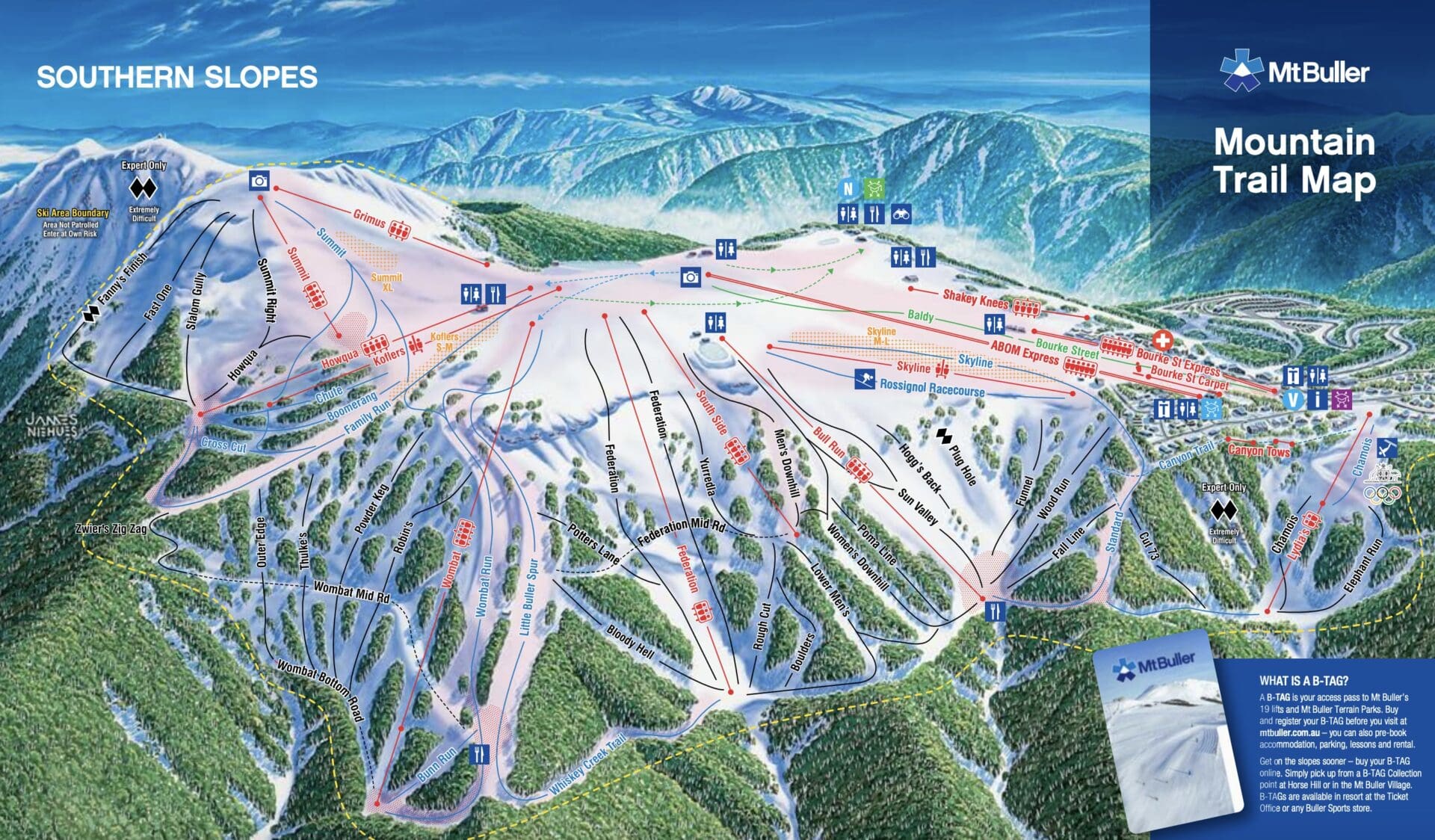 Located around a three-hour drive from Melbourne, Mt Buller boasts Victoria’s largest lift network. The ski area first opened in 1924, thanks to the Ski Club of Victoria, and its infrastructure has evolved slowly into one of the most sophisticated in the country. Out of the 300 skiable acres, 5% is beginner pistes, 41% is intermediate trails, 51% is advanced terrain, and 4% expert terrain. Their base village is also a lively place, featuring a spa, indoor climbing wall, trampoline experience, and the National Alpine Museum.