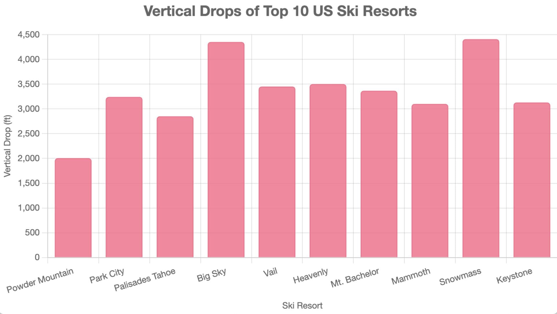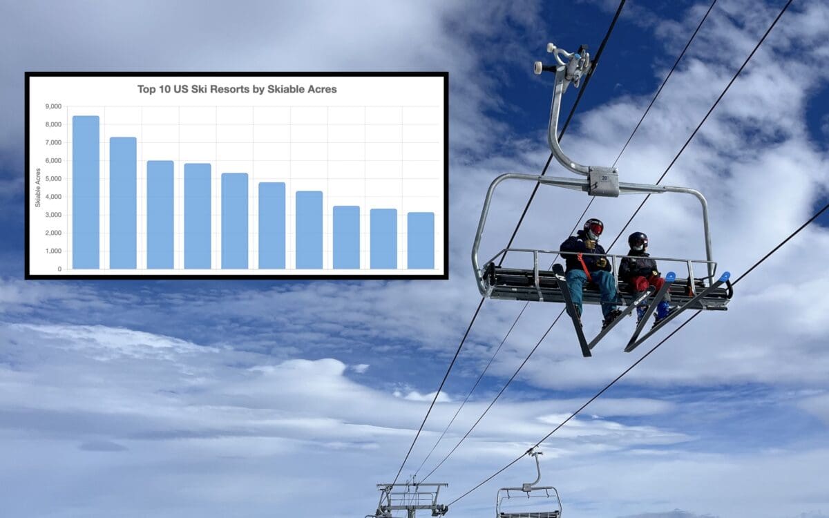 To make sense of these massive terrains, here are some charts highlighting skiable acres, vertical drops, and other key metrics. These visuals help you see at a glance which resorts offer the most skiing.