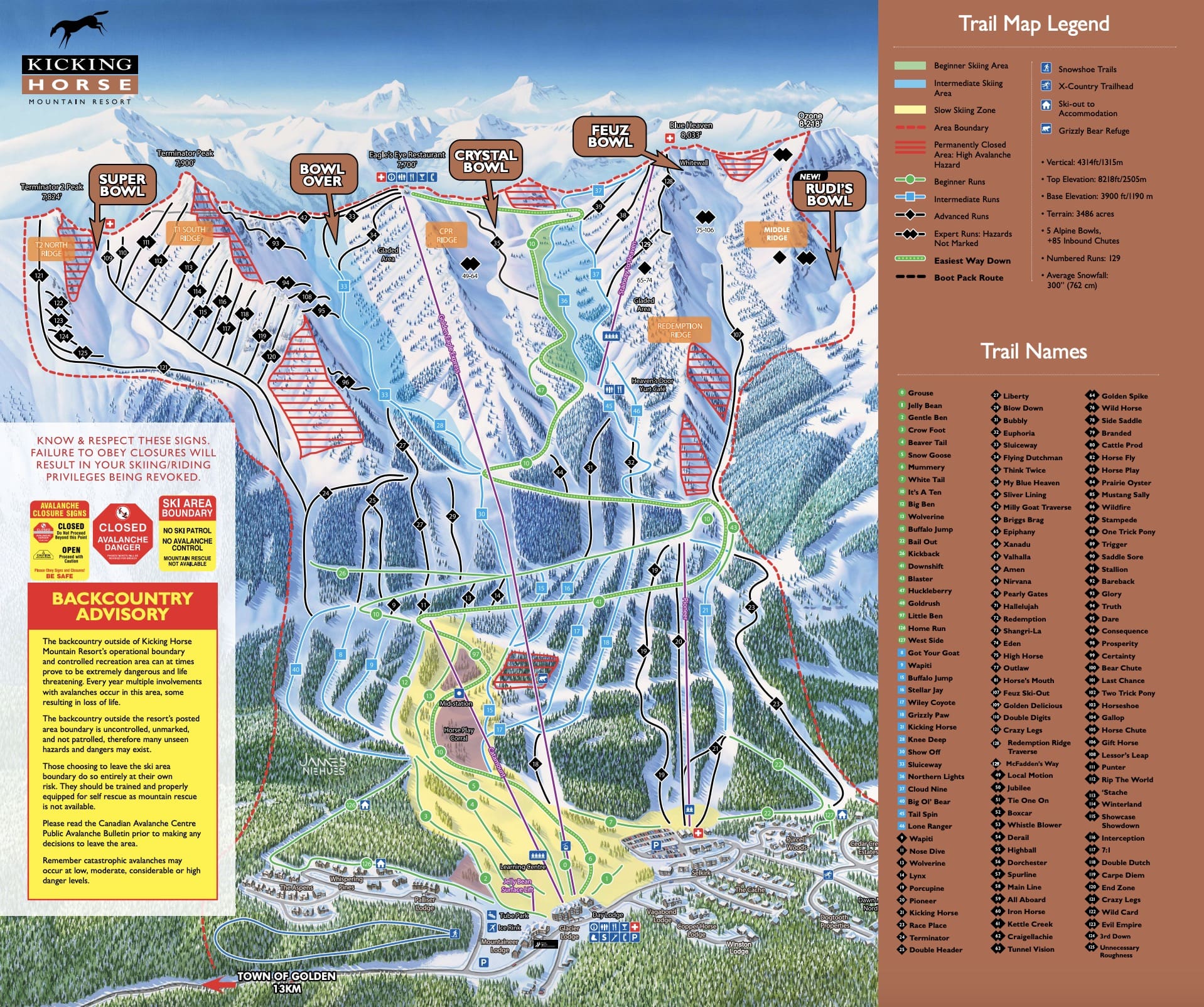Situated near the town of Golden, Kicking Horse Mountain Resort has a fascinating story. It started as Whitetooth ski area and was owned by the town of Golden. However, it featured only lift-accessible terrain on the lower mountain.