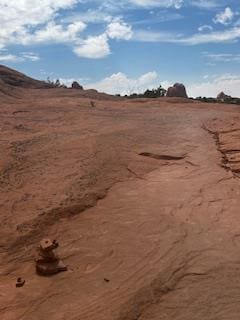 “If you see a cairn in Arches National Park and are tempted to knock it down, please do not! Cairns are very important in rocky desert landscapes to help with navigation.”