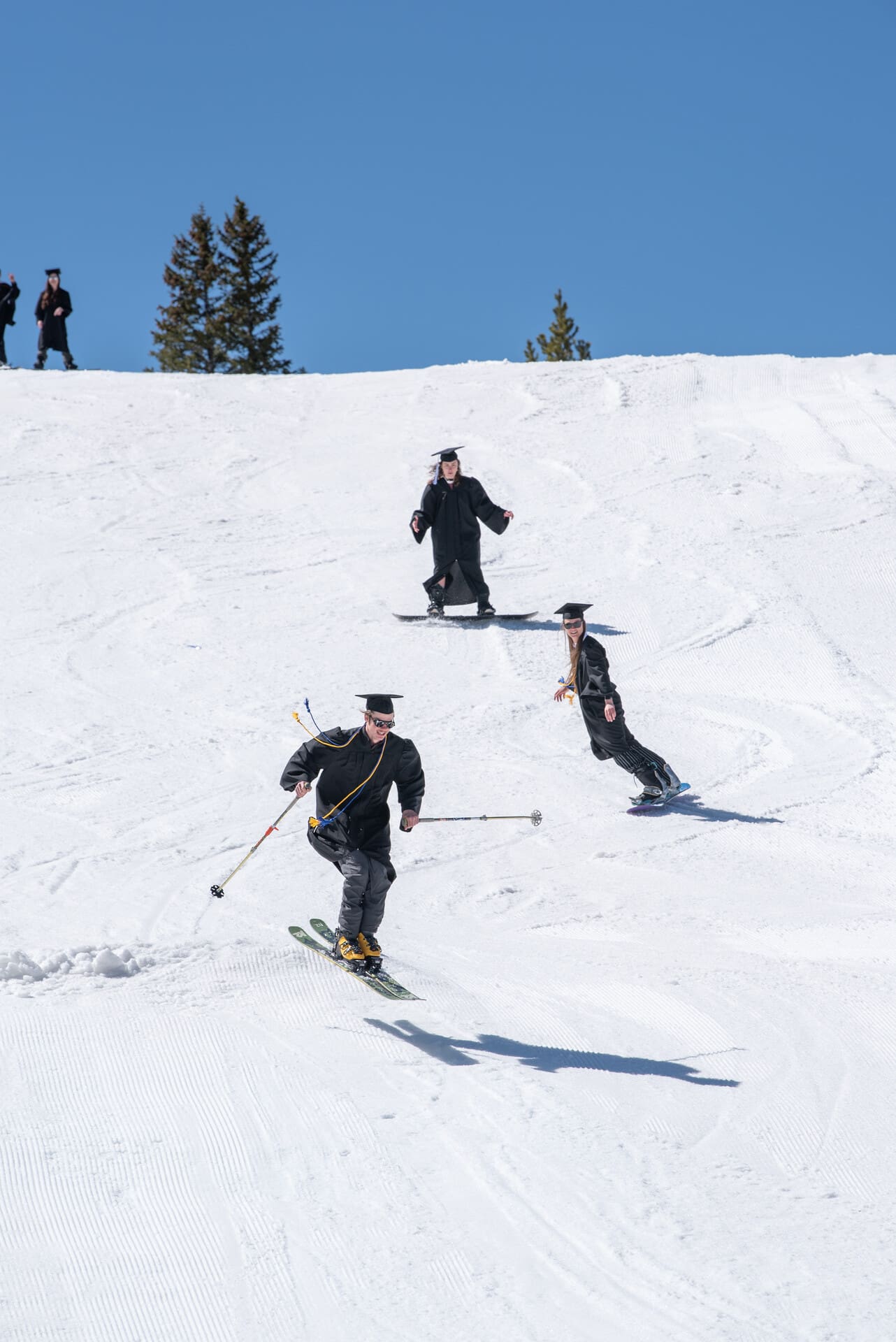 After its usage as a ski area, Dutch Henry became a popular tubing and sledding hill. However, it was not lift-serviced, meaning guests had to carry the tubes and sleds up the steep hill. It was also skied on, as Colorado Mountain College graduates from the ski area operations program glide down the slopes following their graduation ceremony.