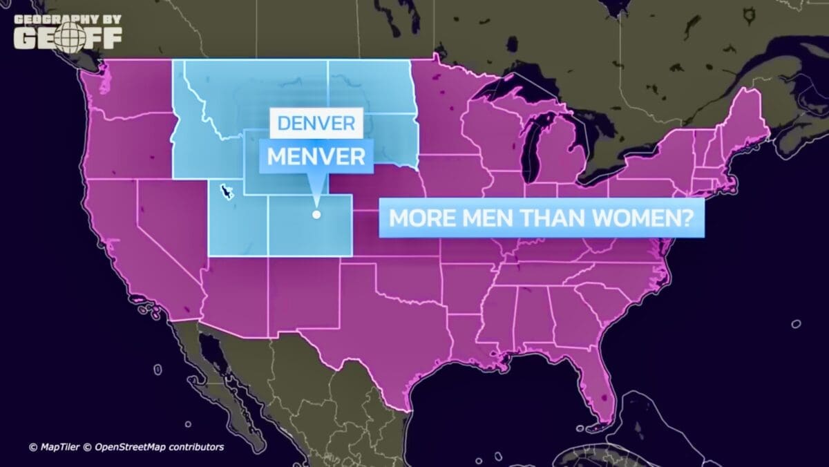 To lighten the mood, Geography By Geoff gave each state a playful nickname based on their male-heavy population: