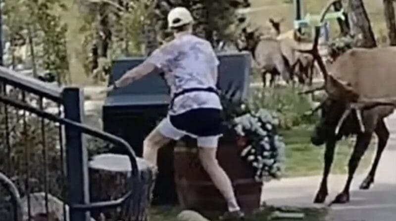 Tourist Wisely Uses Trash Can To Deflect Bull Elk Attack