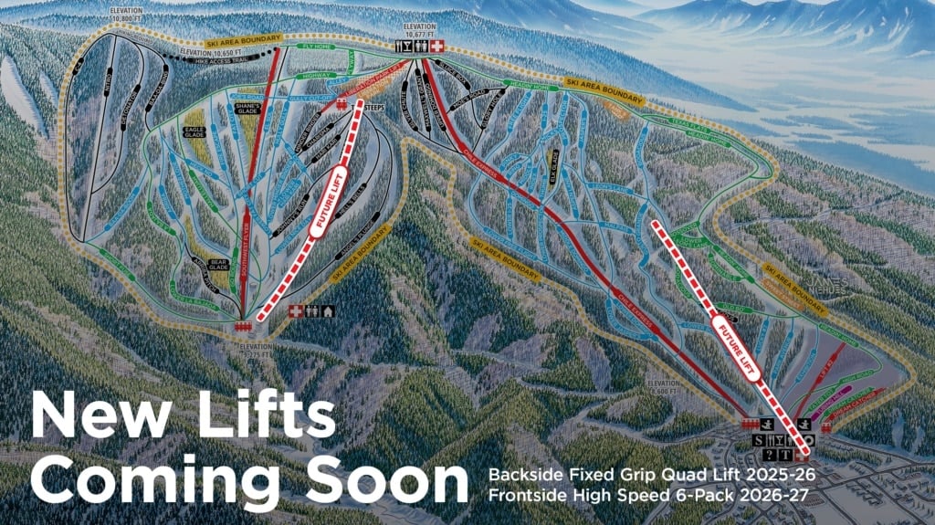 The winter of 2026-27 will see the opening of a new high-speed six-pack chairlift (Angel Express). This chairlift, which will go from the base area to mid-mountain, will have a length of 5,342 feet and a speed of 1,000 feet per minute. A new tennis and pickleball facility is also under construction.