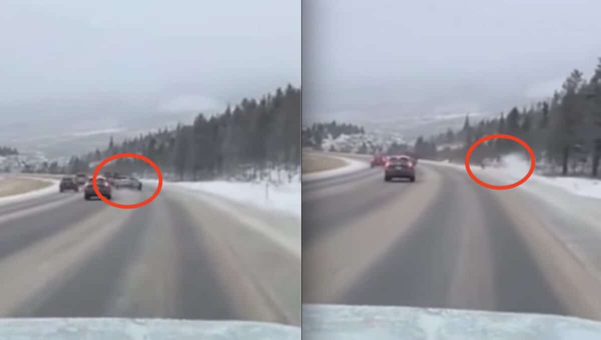 If you’ve ever needed a reminder to slow down while driving in winter weather conditions, let this be it. This Subaru driver came unbelievably close to a serious crash while ripping down the hill on the west side of Eisenhower Tunnel along Interstate 70. If you’ve driven Colorado’s I-70 before you know how treacherous this section can be, and people still fly down it like they’re invincible. It’s pretty clear based on the other traffic that this guy was going too fast, and they’re incredibly lucky to have driven away.