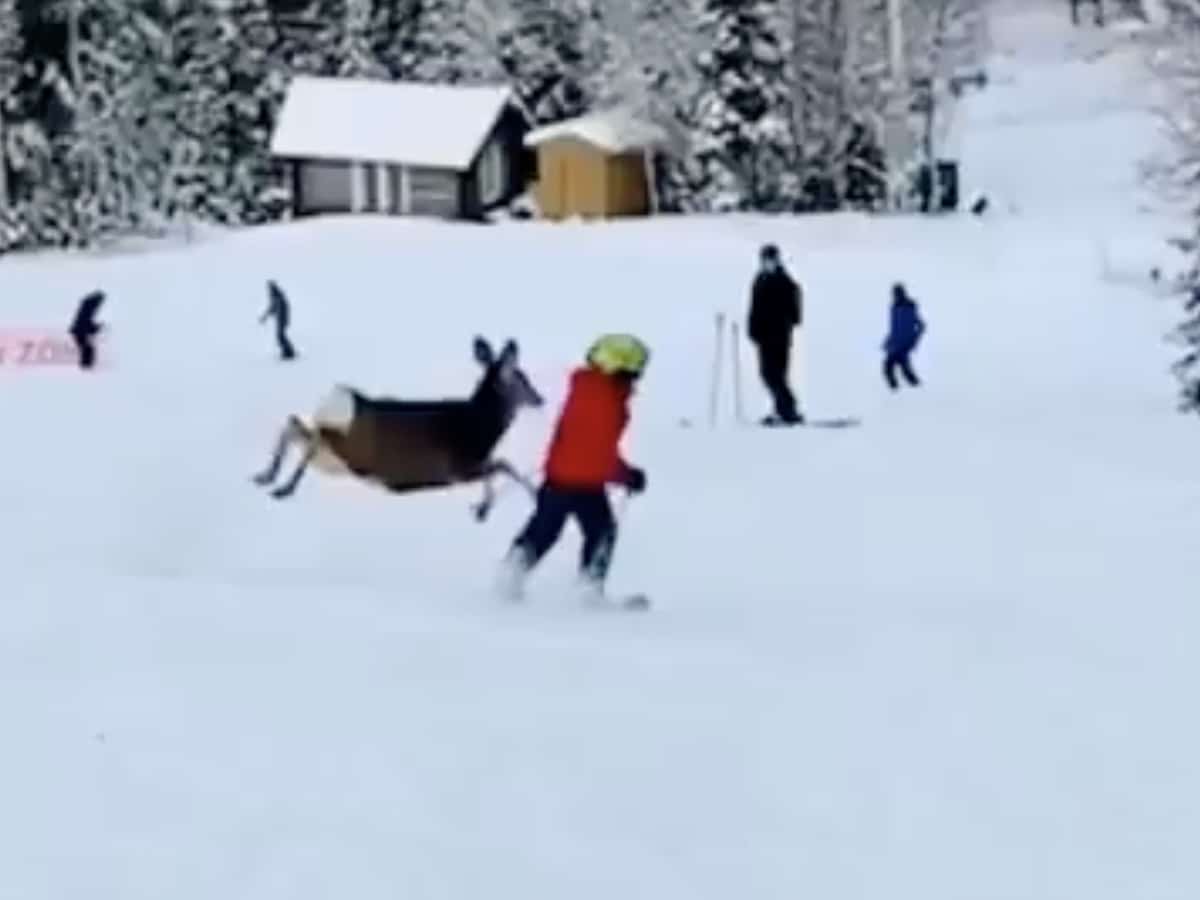 Thankfully the cameras were rolling and this near miss was documented. Just add deer to the many reasons why wearing a helmet while skiing is a wise idea. Wow.