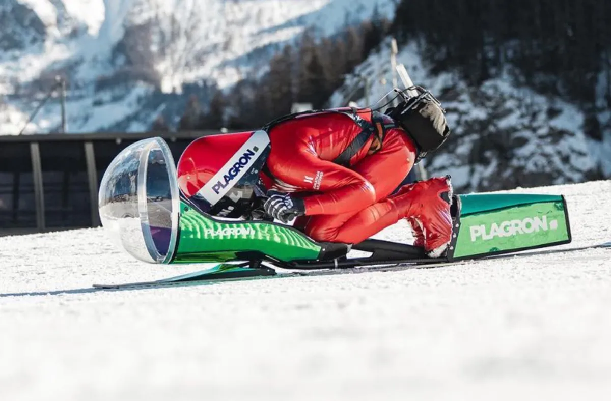 How do you decelerate a snow-scooter when your going 112mph? Why a drag car style parachute attached to your butt with a finger mounted trigger of course. Couldn’t help but to chuckle when first seeing the incredibly niche sport of speed snow-scooting but the velocities are no joke and the consequences are too. Hereโsย Corentin Desboisย pointing his custom built snowscooter down the speed track at Vars with varying success.